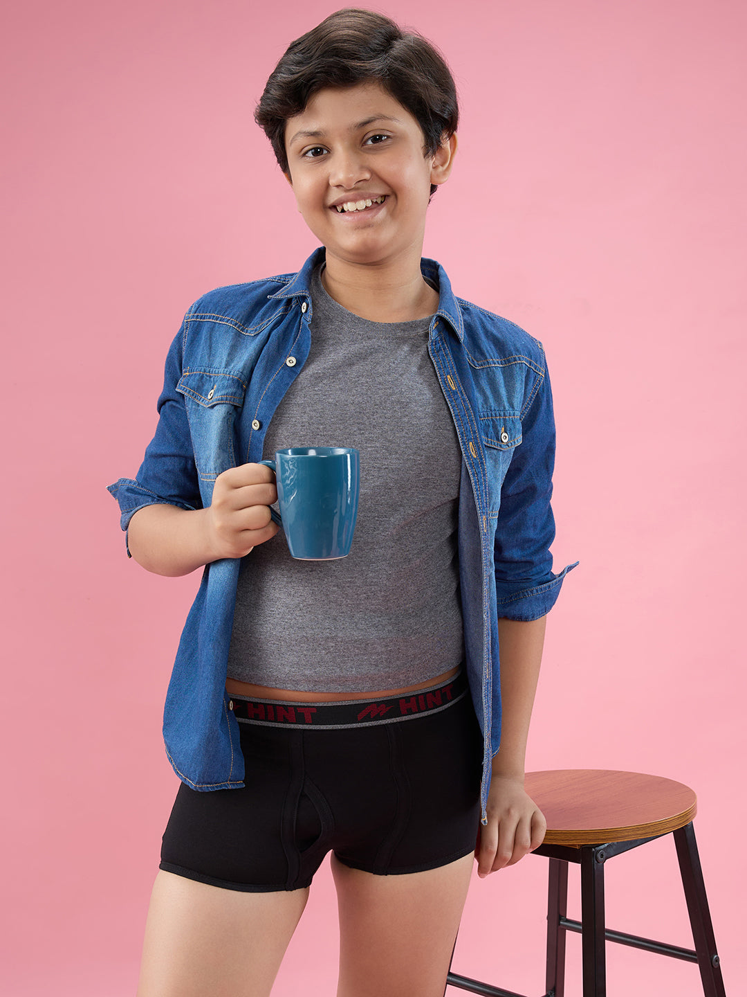 The HINT Boys Metro Mini Cotton Trunks are crafted to deliver day-long comfort, dependable support, and breathable softness. Made from 100% premium combed cotton, these mini trunks feel gentle on the skin and offer excellent airflow for active routines. The double-layered contoured pouch provides secure support, while the sweat-absorbing fabric helps keep them dry through sports, school, or casual wear. A smooth, ultra-soft waistband ensures a comfortable, no-irritation fit, and the tailored mini cut offers a sleek silhouette that stays in place. Designed in a plain style for easy pairing, these trunks maintain their shape and freshness wash after wash. You can buy this Black and D Green colour set at a great price, offering excellent cost value for everyday essentials.