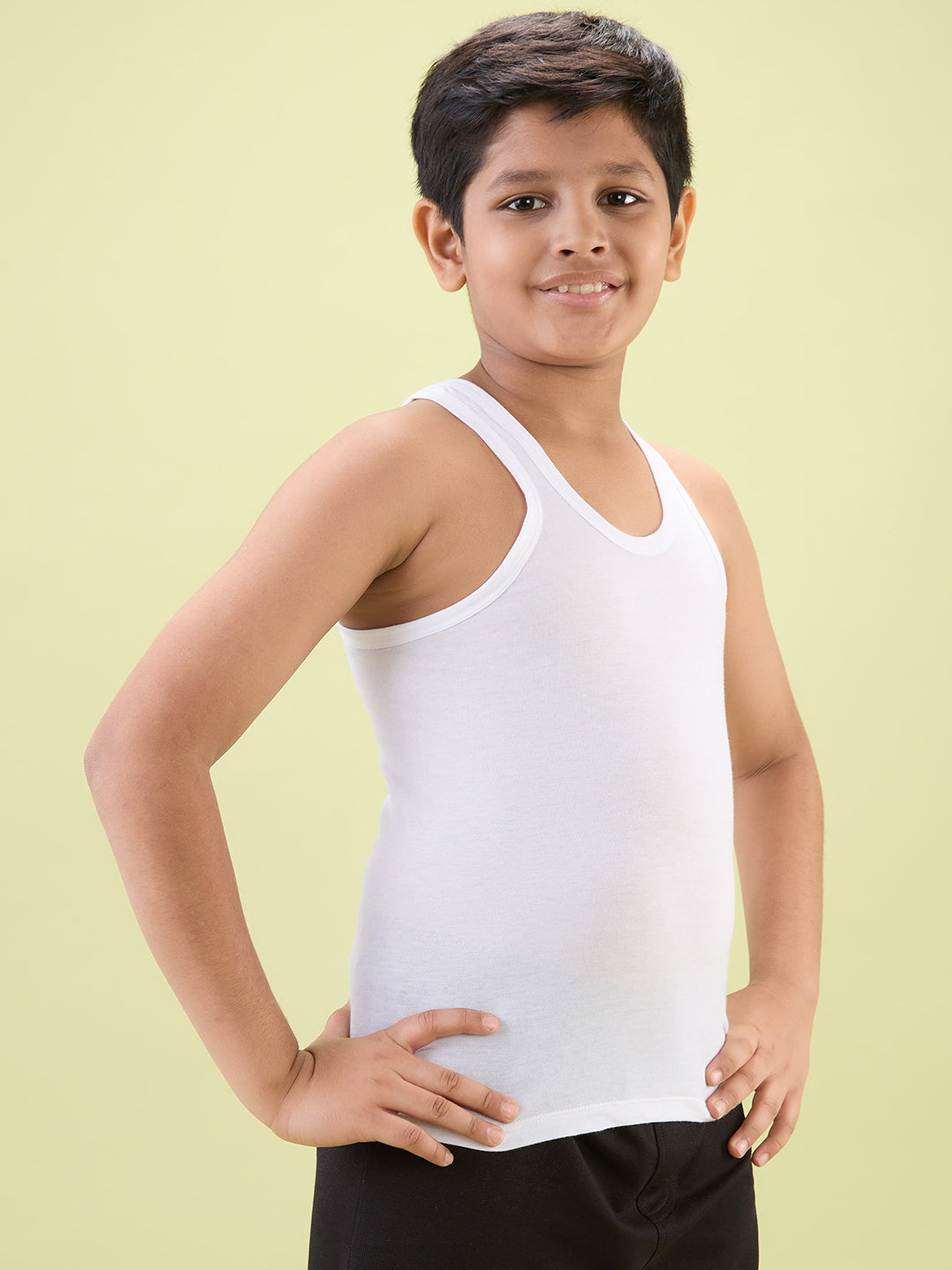 The HINT Boys’ Metro RN Cotton Vest delivers a perfect balance of comfort, durability, and everyday style. Crafted from 100% premium combed cotton, it offers a soft feel with excellent breathability, making it ideal for active days filled with play and movement. The contoured armholes ensure easy mobility, while the tailored fit gives a neat, modern look that pairs well on its own or under shirts and jackets. Thoughtful details like the broad folded edges add a trendy touch boys will love. You can buy this reliable vest in classic white colour at a great price, offering dependable comfort and excellent cost value for daily wear.