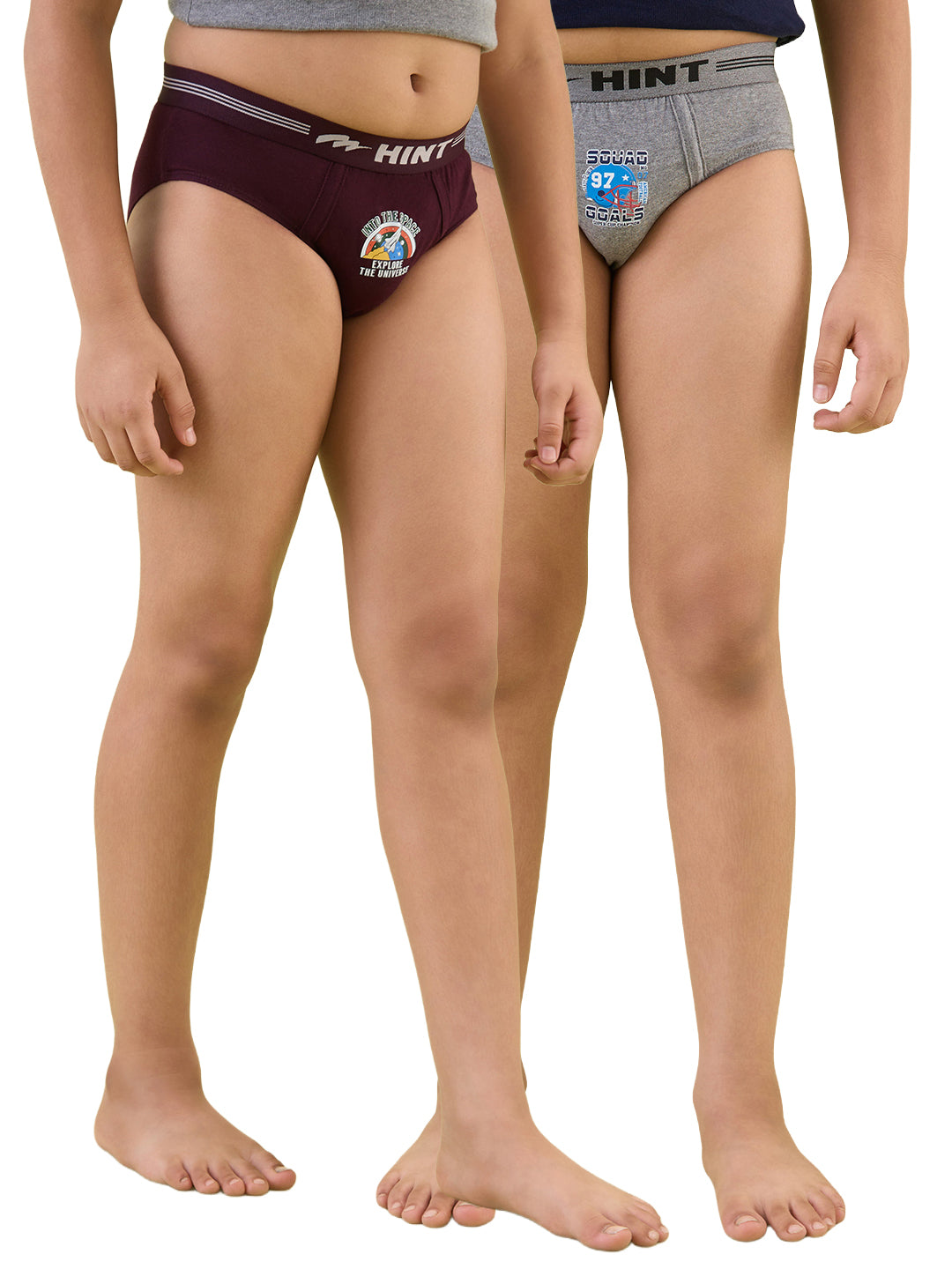 The HINT Boys Stylo Mini Cotton Briefs are crafted to give active boys the perfect mix of comfort, support, and breathability. Made from 100% premium combed cotton, these briefs feel exceptionally soft on the skin and allow excellent airflow, making them ideal for daily wear or sports. The double-layered contoured pouch offers enhanced support and keeps them secure through every activity, while the moisture-wicking fabric helps absorb sweat to keep them dry and fresh. With tailored cuts that create a modern, body-hugging fit, these briefs move with the wearer without causing restriction. The smooth, ultra-soft waistband ensures irritation-free comfort all day long. You can buy this Wine & D Grey Mel colour pack at an affordable price, giving great cost value along with lasting durability.