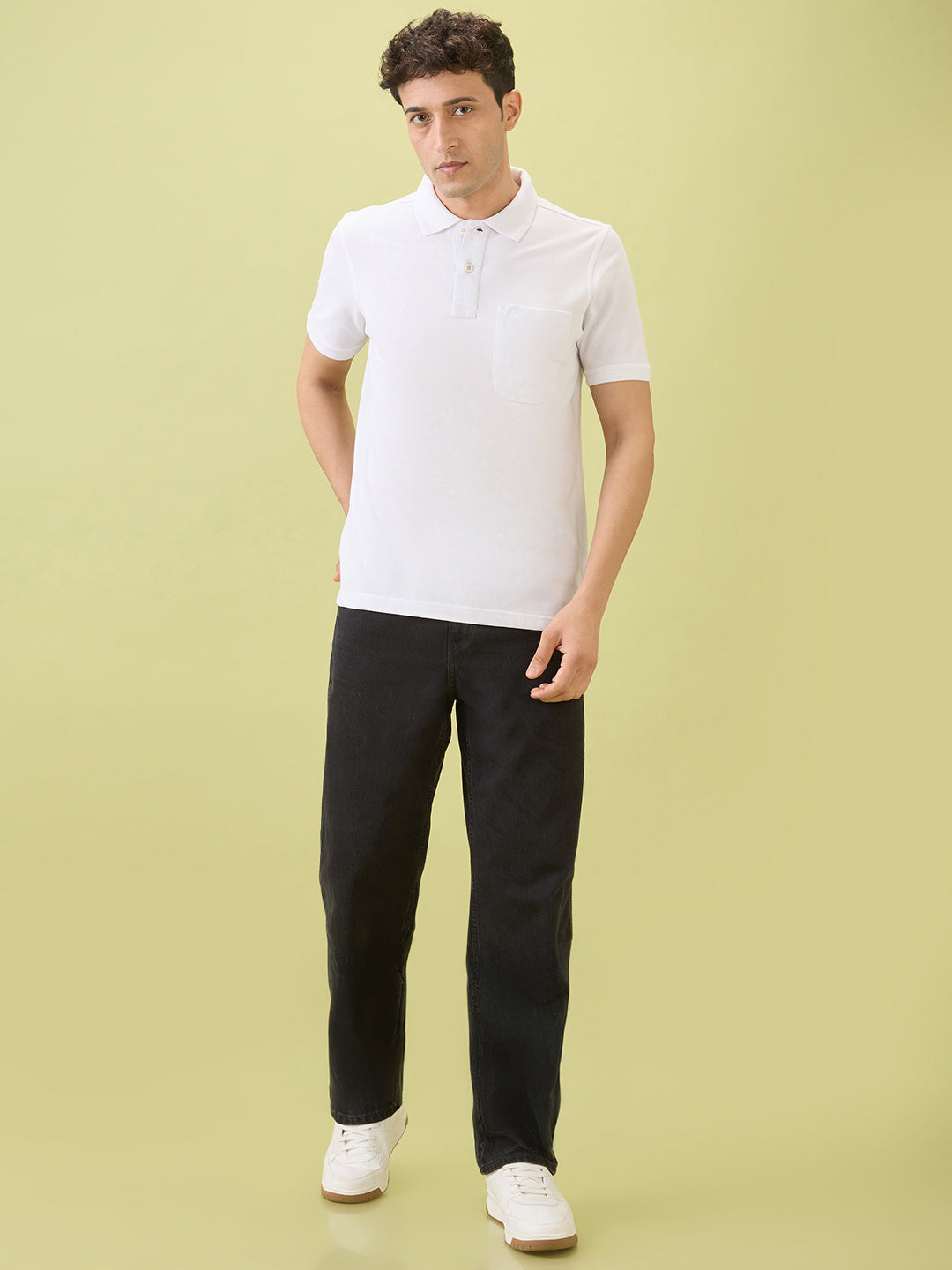 This polo features a classic flat knit collar and cuffs, side slits for ease of movement, and a functional chest pocket for added convenience. Designed in a classic fit, it gives a clean, relaxed silhouette that works effortlessly for both casual and semi-formal occasions.