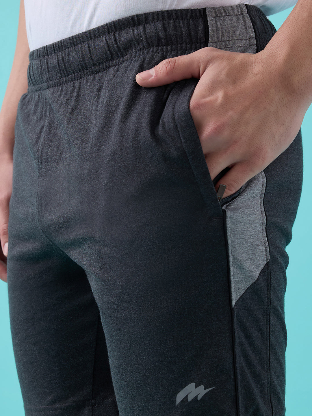 Shop the Men’s Cotton Shorts with Ribbed Waistband and Zipper Pockets in Anthra Melange colour.