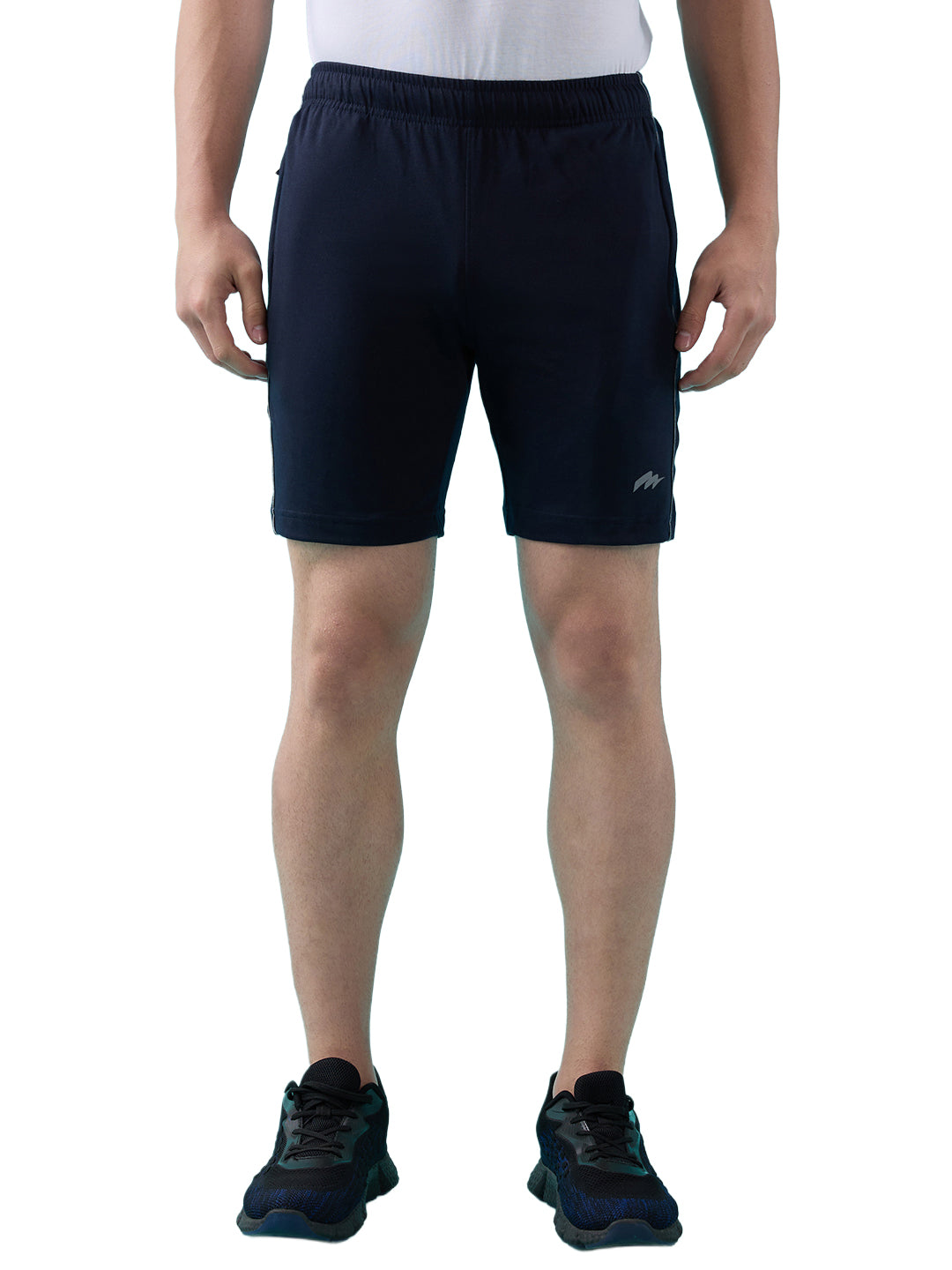 Shop the Men’s Cotton Shorts with Ribbed Waistband and Zipper Pockets in N. Denim Melange colour.