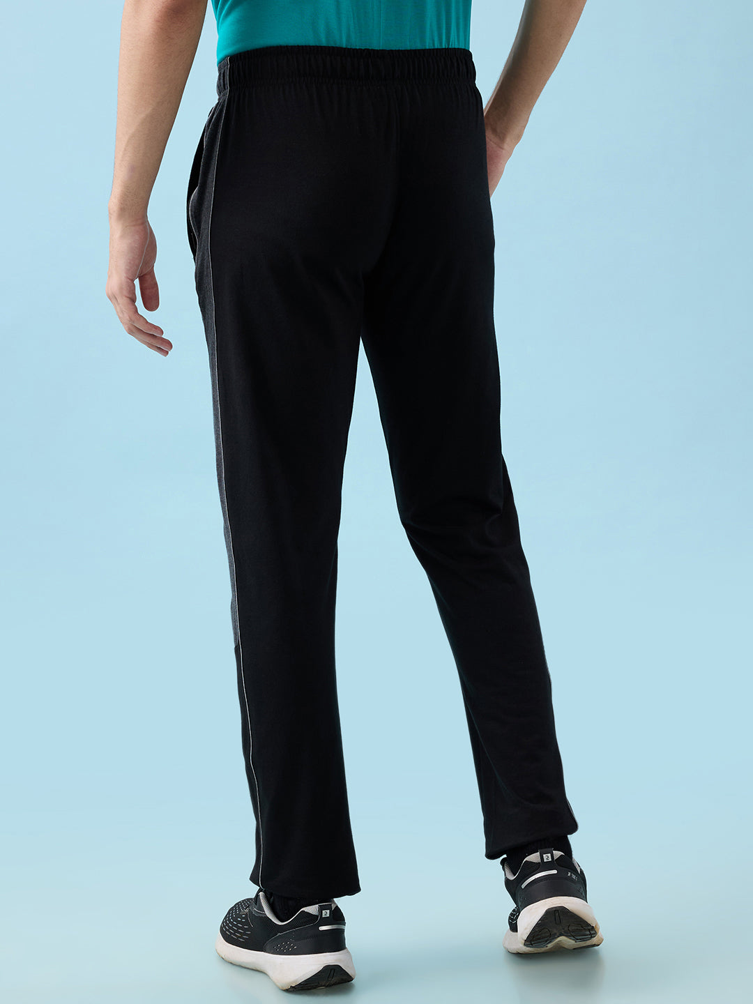 Shop the Men’s Cotton-Blend Track Pants with Zipper Pockets and Ribbed Waistband in Black colour.