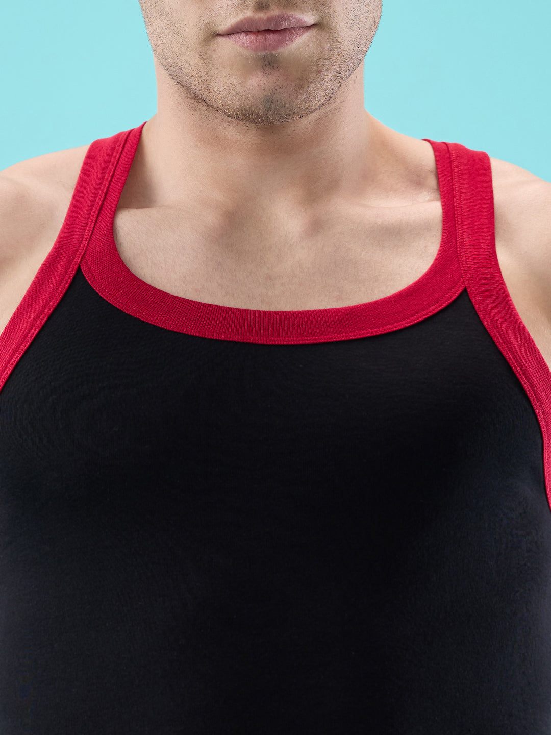 Shop the Men’s Cotton Gym Vest with Soft, Breathable, Sleeveless Design (M-111) in Black colour.