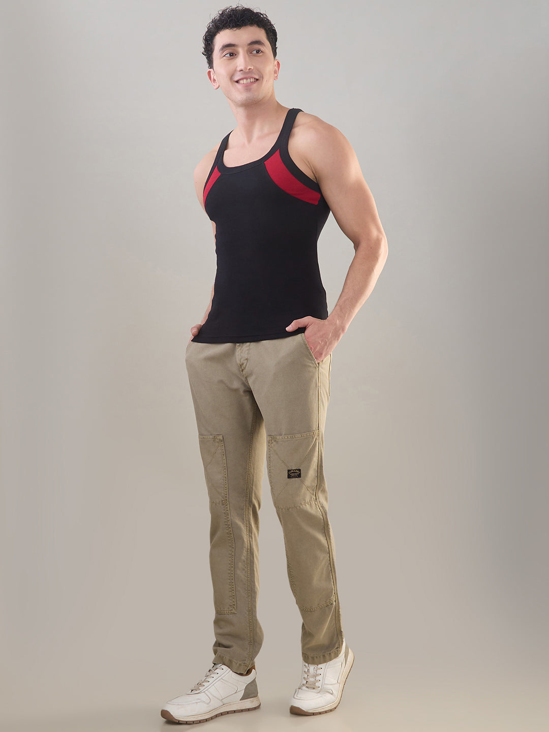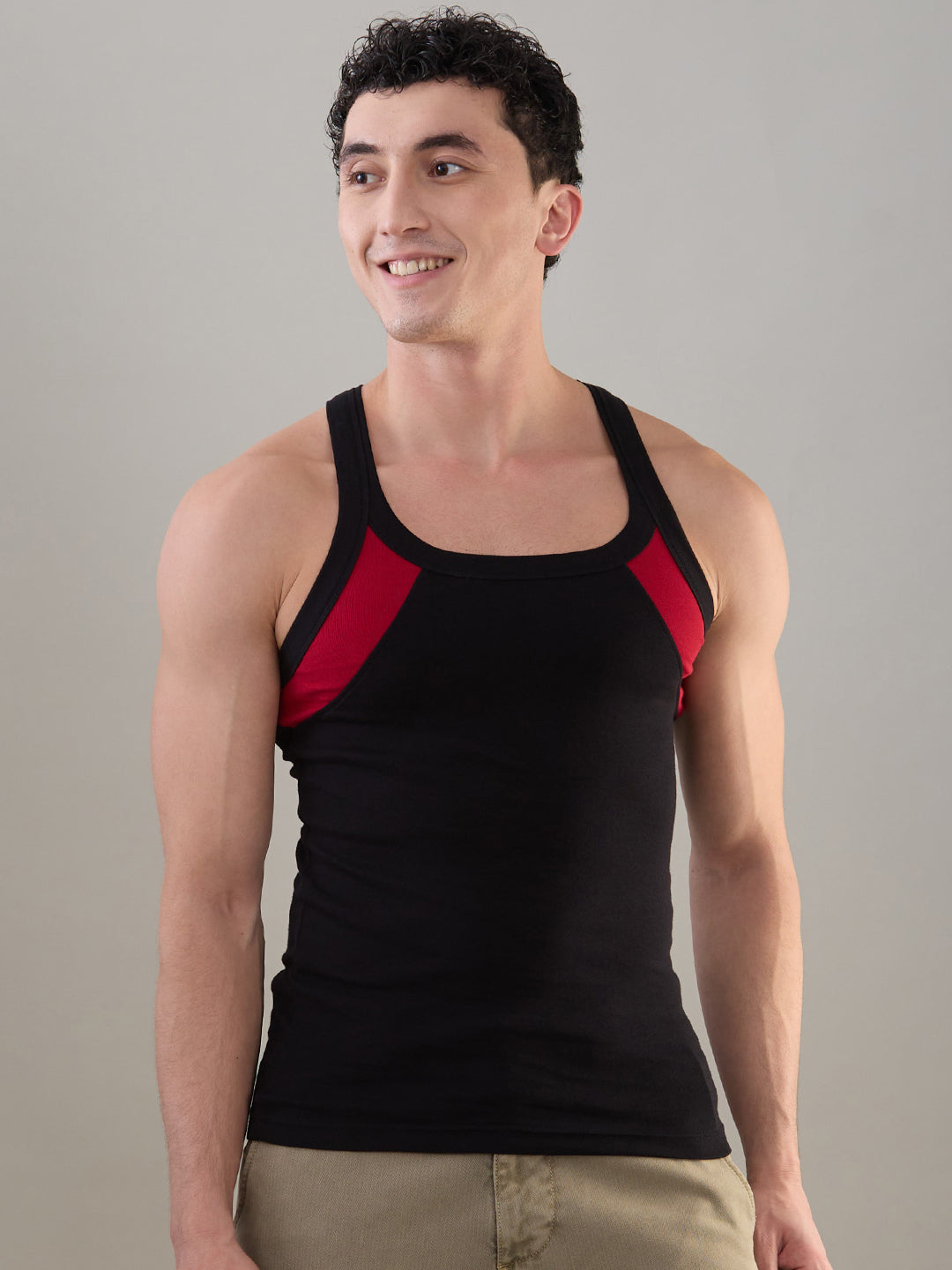 Shop the Men’s Cotton Gym Vest with Soft, Breathable, Sleeveless Design (M-333) in Black colour.