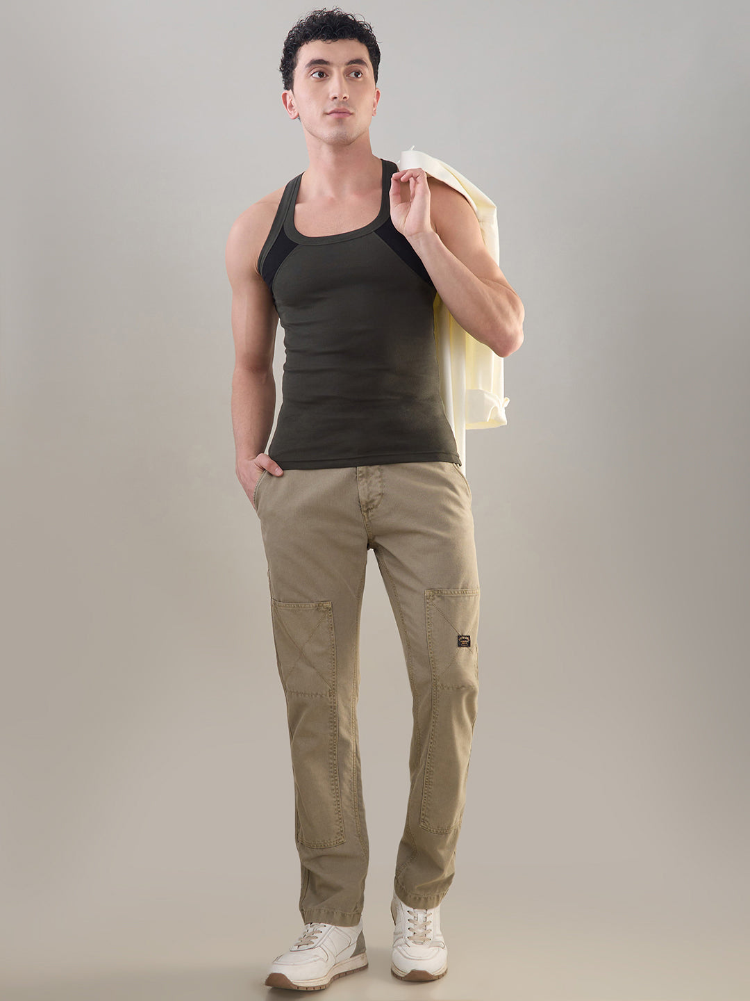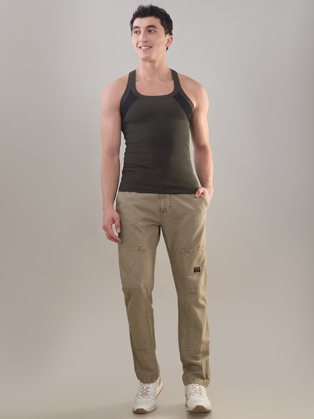 Shop the Men’s Cotton Gym Vest with Soft, Breathable, Sleeveless Design (M-333) in Military Green colour.