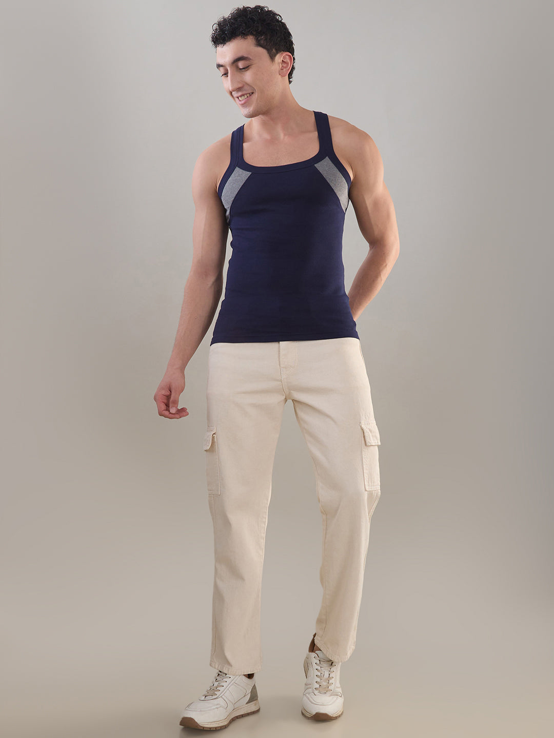 Shop the Men’s Cotton Gym Vest with Soft, Breathable, Sleeveless Design (M-333) in Navy colour.