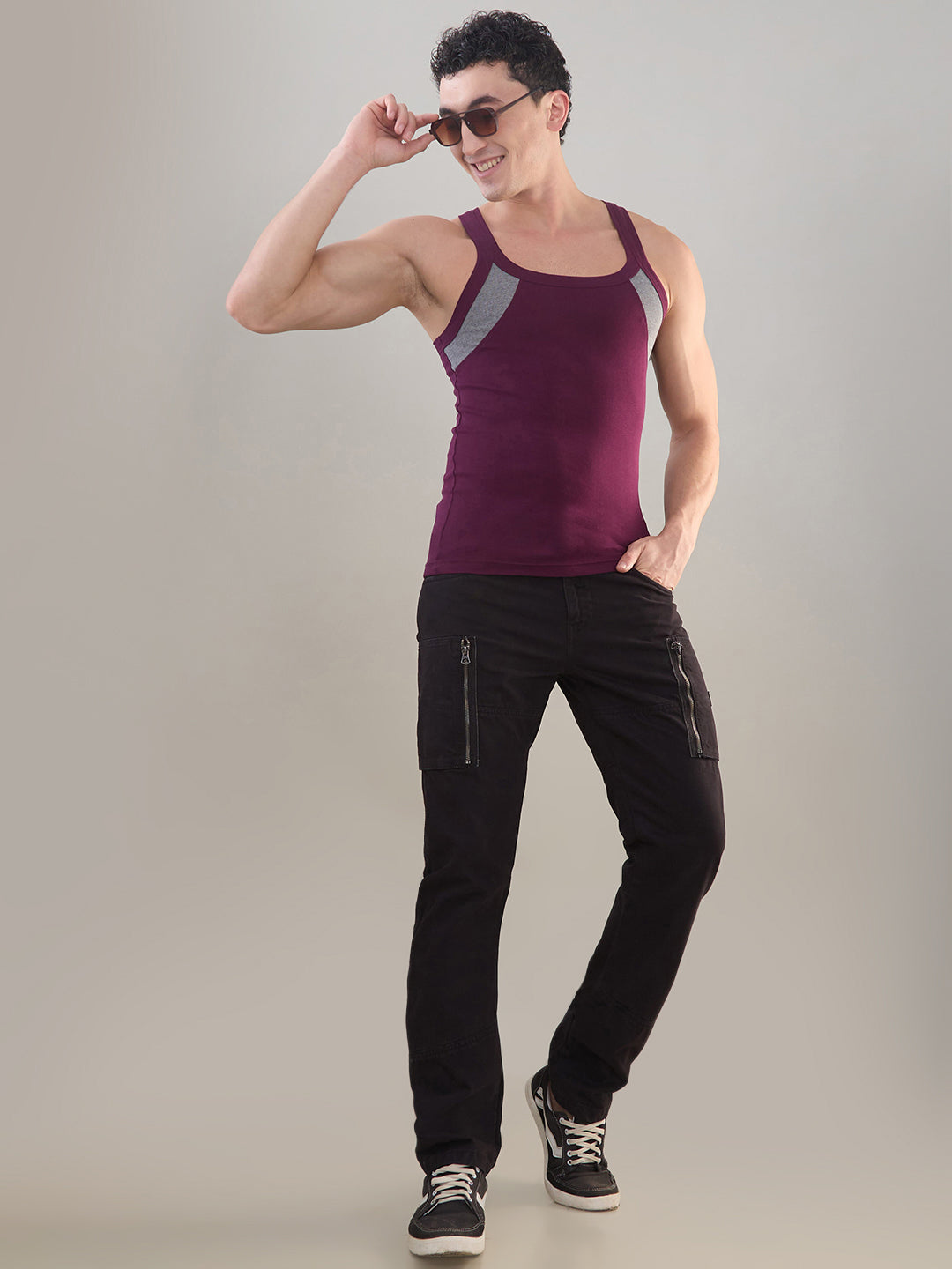 Shop the Men’s Cotton Gym Vest with Soft, Breathable, Sleeveless Design (M-333) in Purple colour.