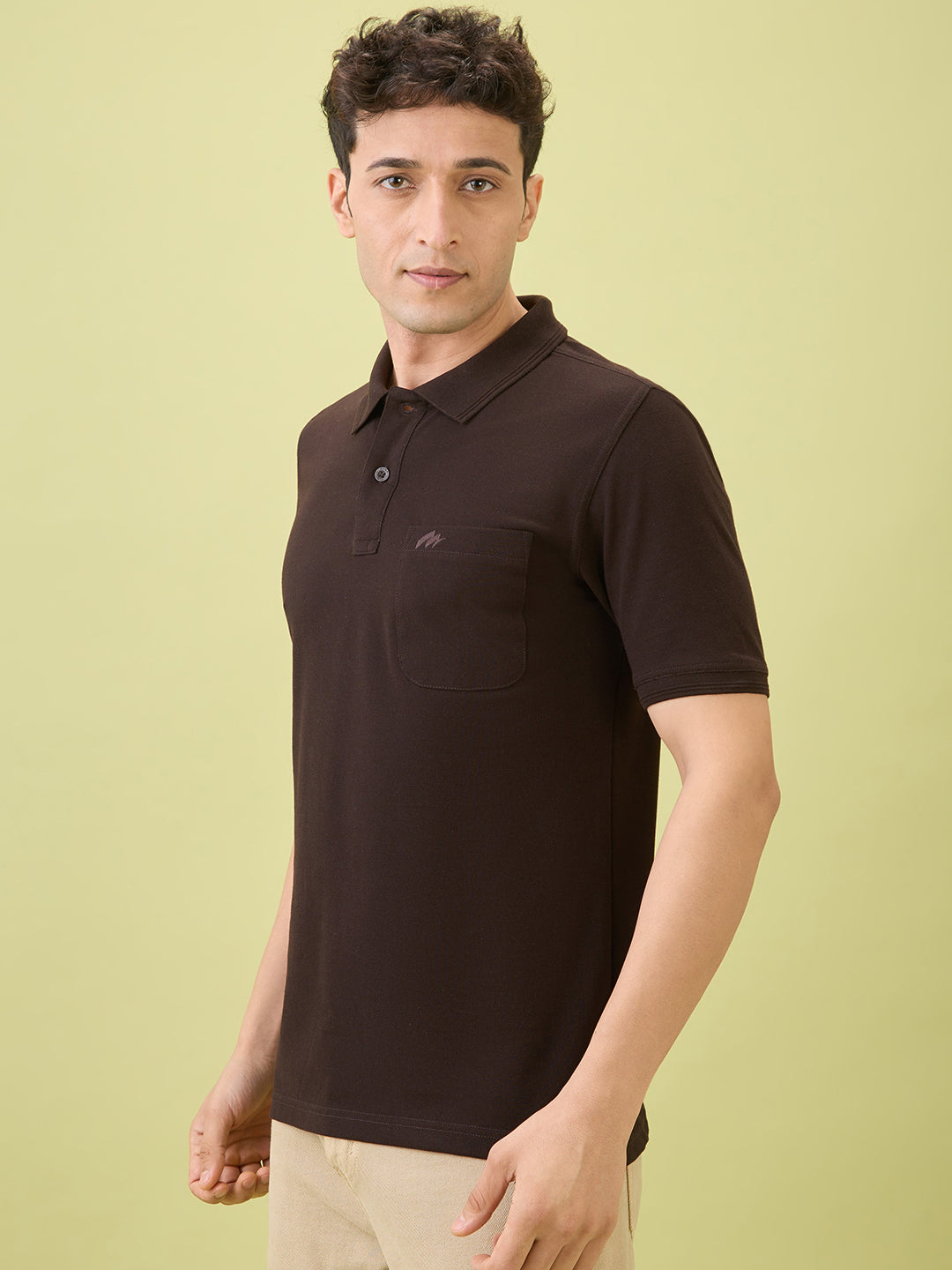 Shop the Men’s Cotton Half Sleeve Polo T-Shirt with Pocket in Chocolate Brown colour.