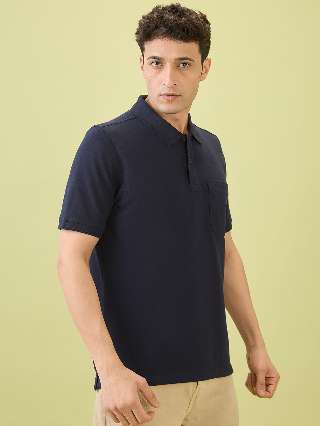 Shop the Men’s Cotton Half Sleeve Polo T-Shirt with Pocket in Navy colour.