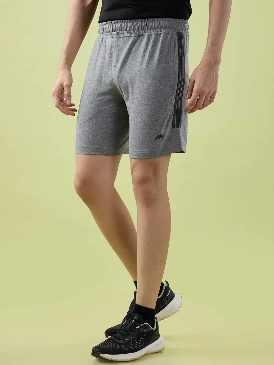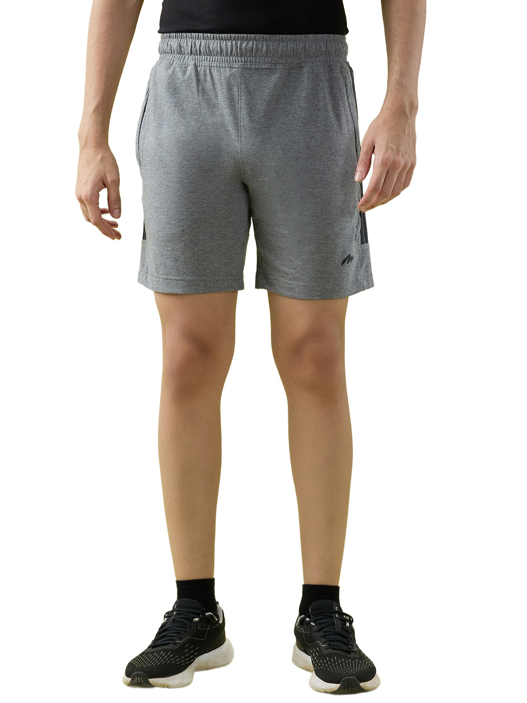 Shop the Men’s Cotton Shorts with Side Taping, Zipper Pockets & Elastic Waistband in Dk Gray Melange colour.
