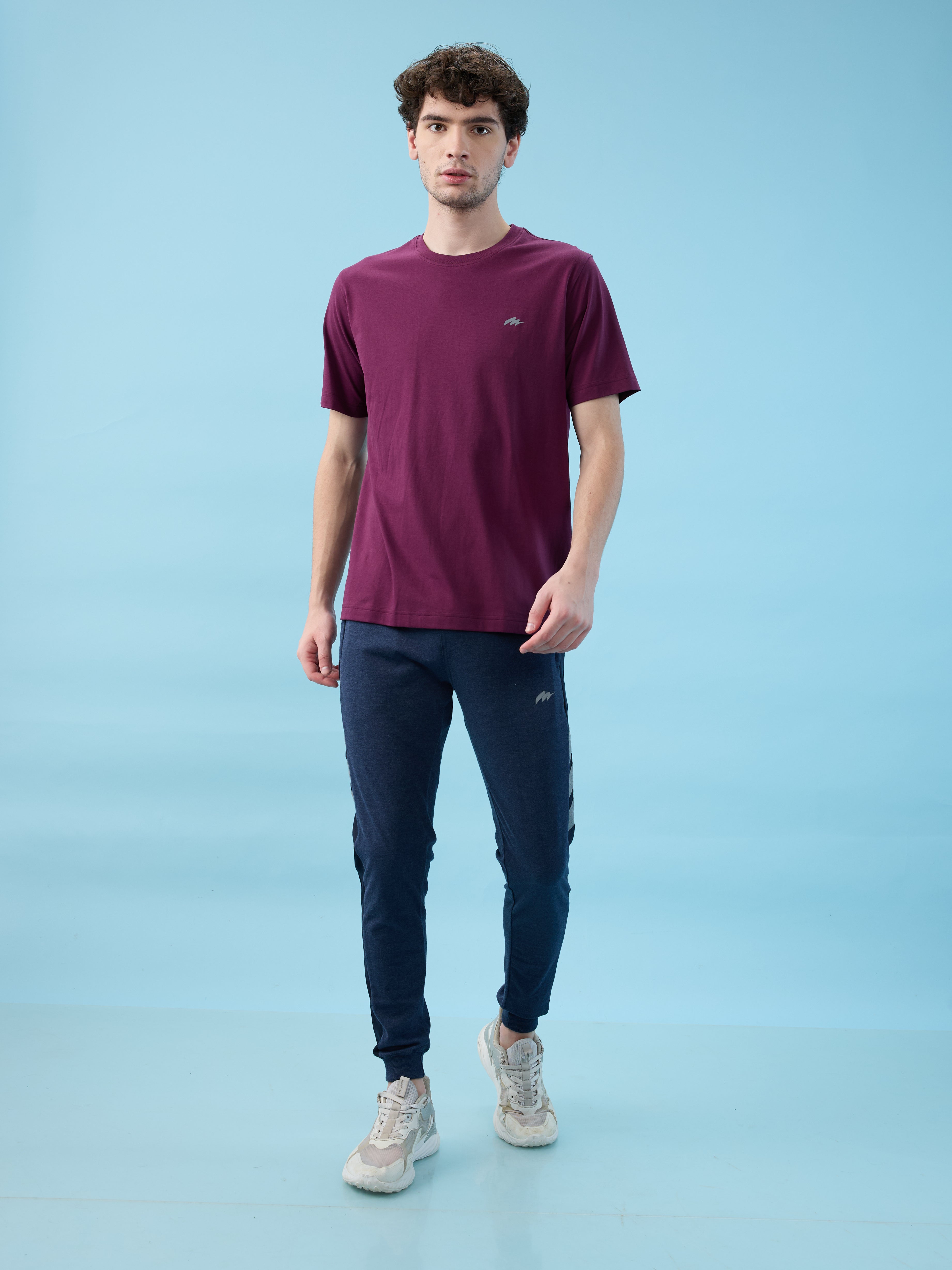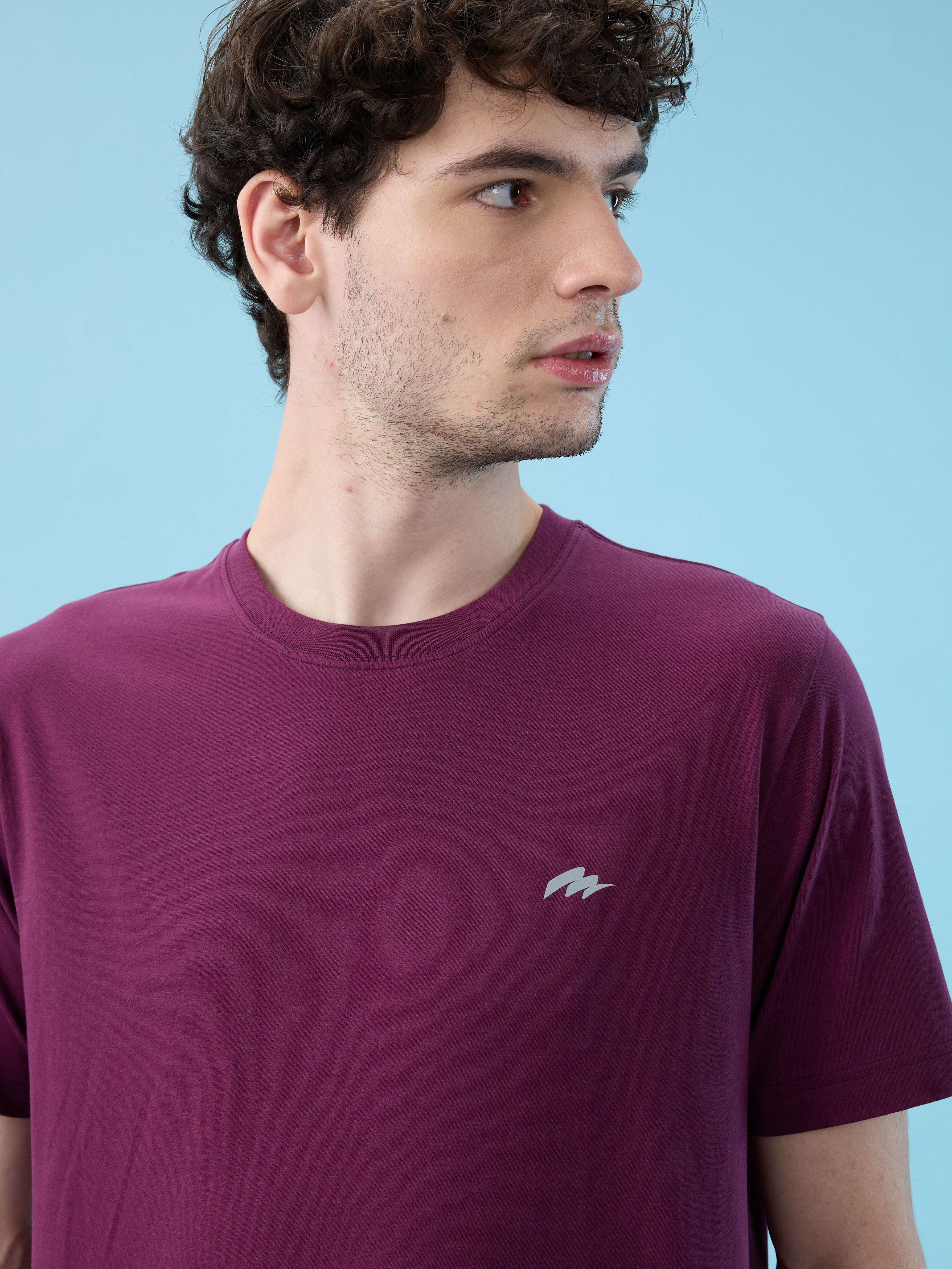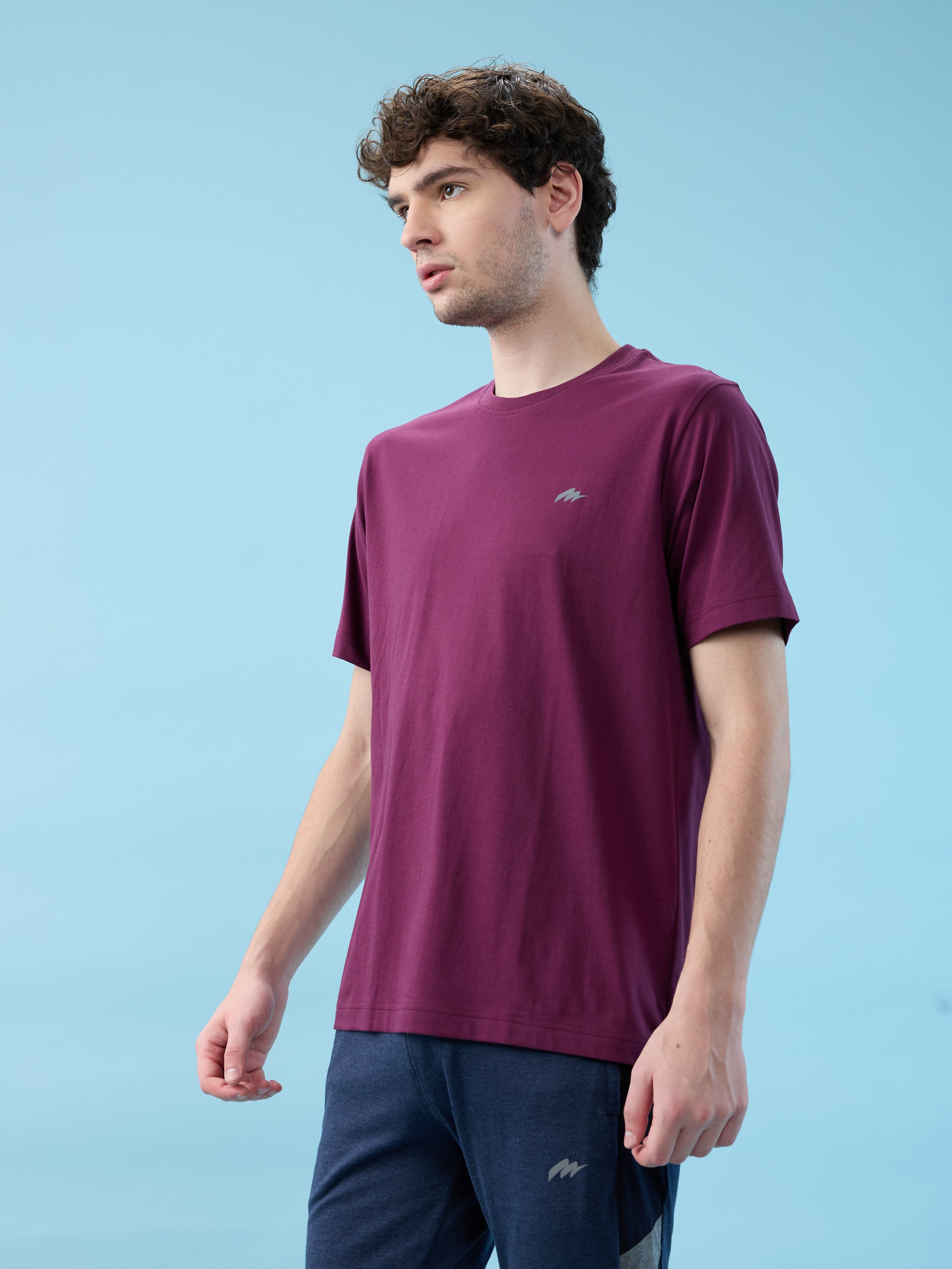 Shop the Men’s Crew Neck Cotton-Poly Pique Half-Sleeve T-Shirt in Plum colour.