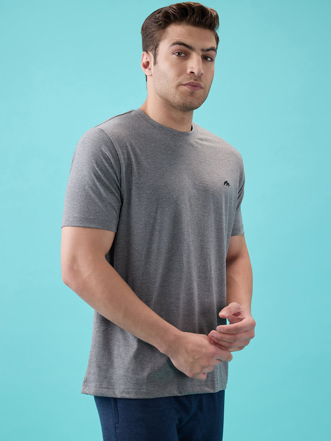 Shop the Men’s Crew Neck Cotton-Poly Pique Half-Sleeve T-Shirt in Steel Grey colour.