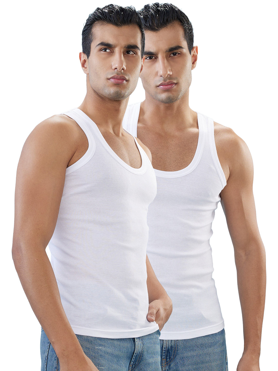 Shop the Men’s Duro RN Cotton Innerwear Vests with Soft, Breathable Comfort in White colour.