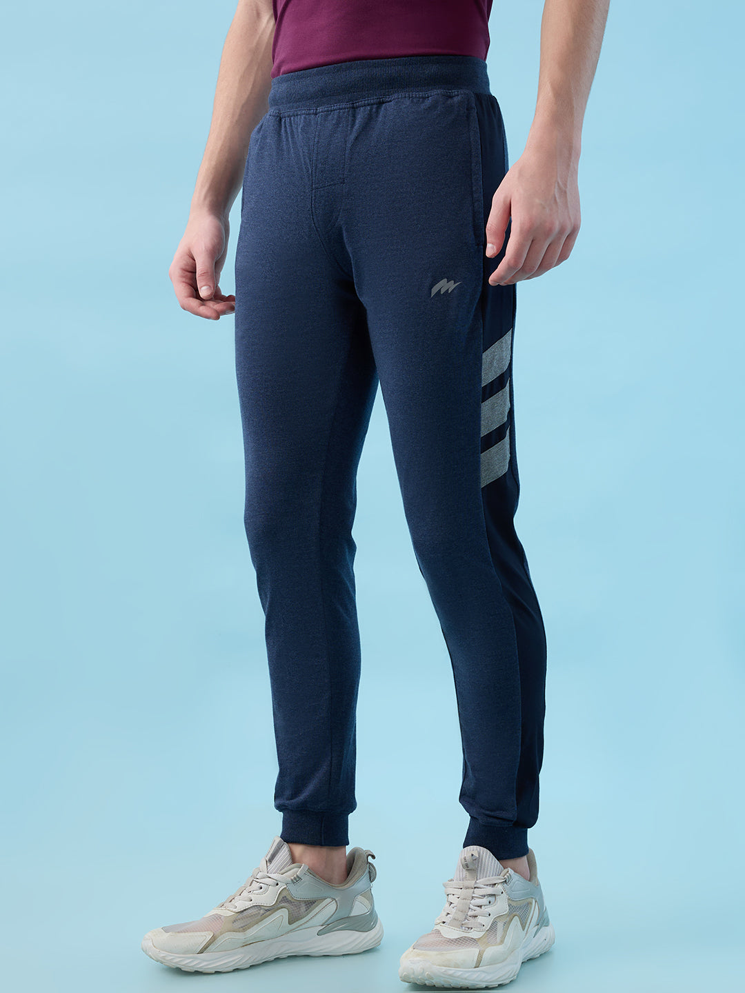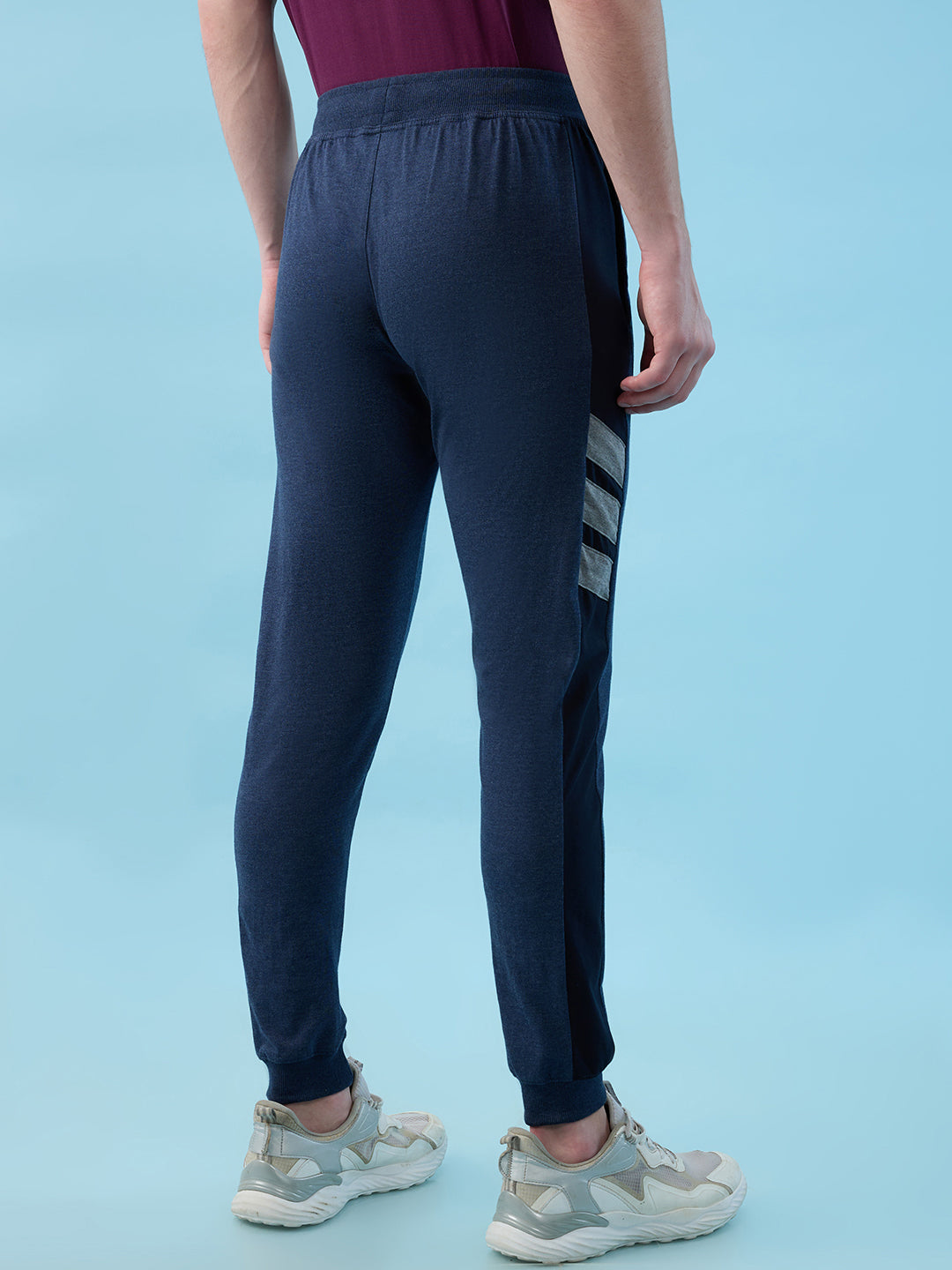 Shop the Men’s Joggers with Contrast Side Panel, Zippered Pockets & Ribbed Waist in N. Denim Melange colour.