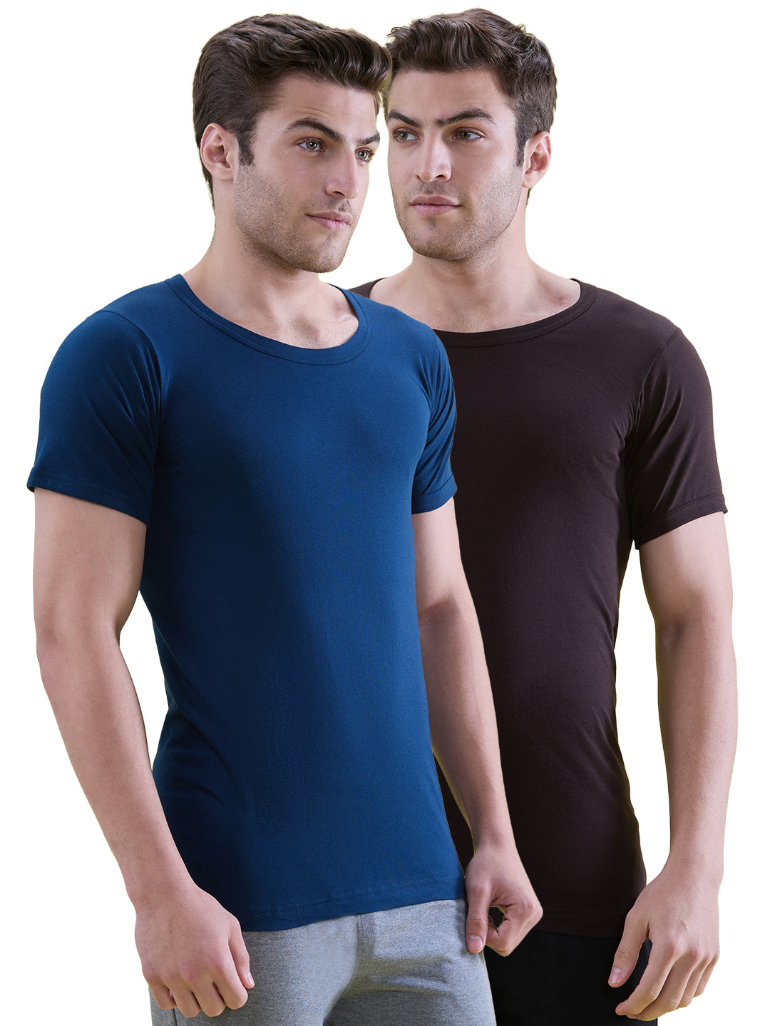 Shop the Men’s Metro RNS Cotton Half Sleeve Vests with Soft, Breathable Comfort in Airforce & Coffee colour.