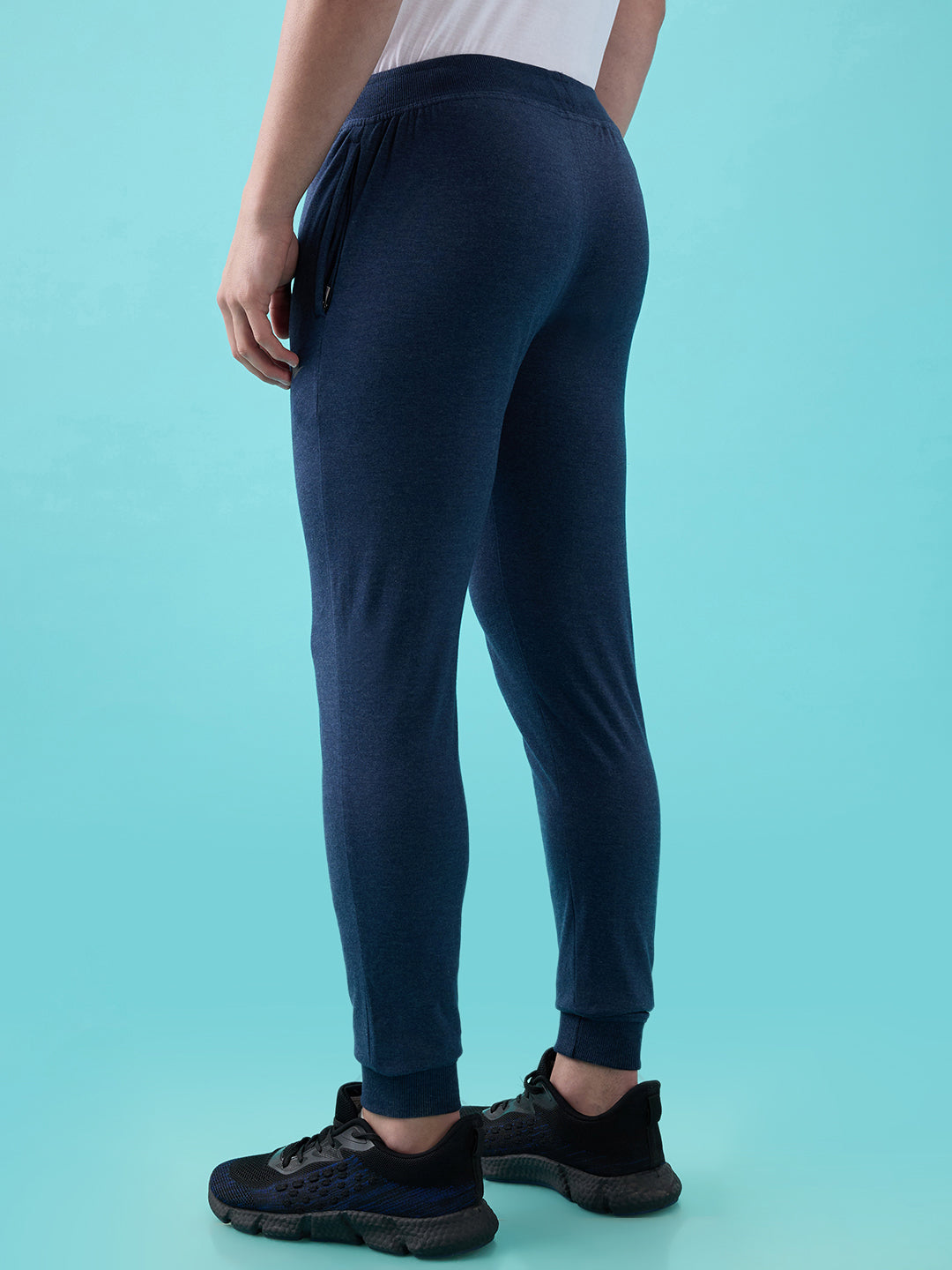 Shop the Men’s Plain Cotton-Blend Joggers with Zipper Pockets and Ribbed Hem in Navy Blue colour.