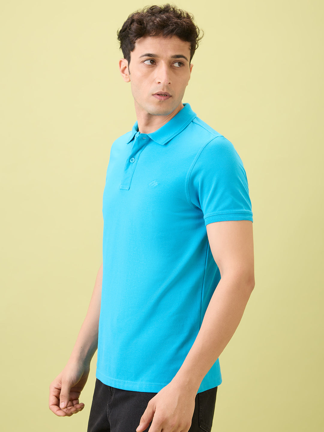 Shop the Men’s Half Sleeve Polo T-Shirt in Aqua Blue colour.