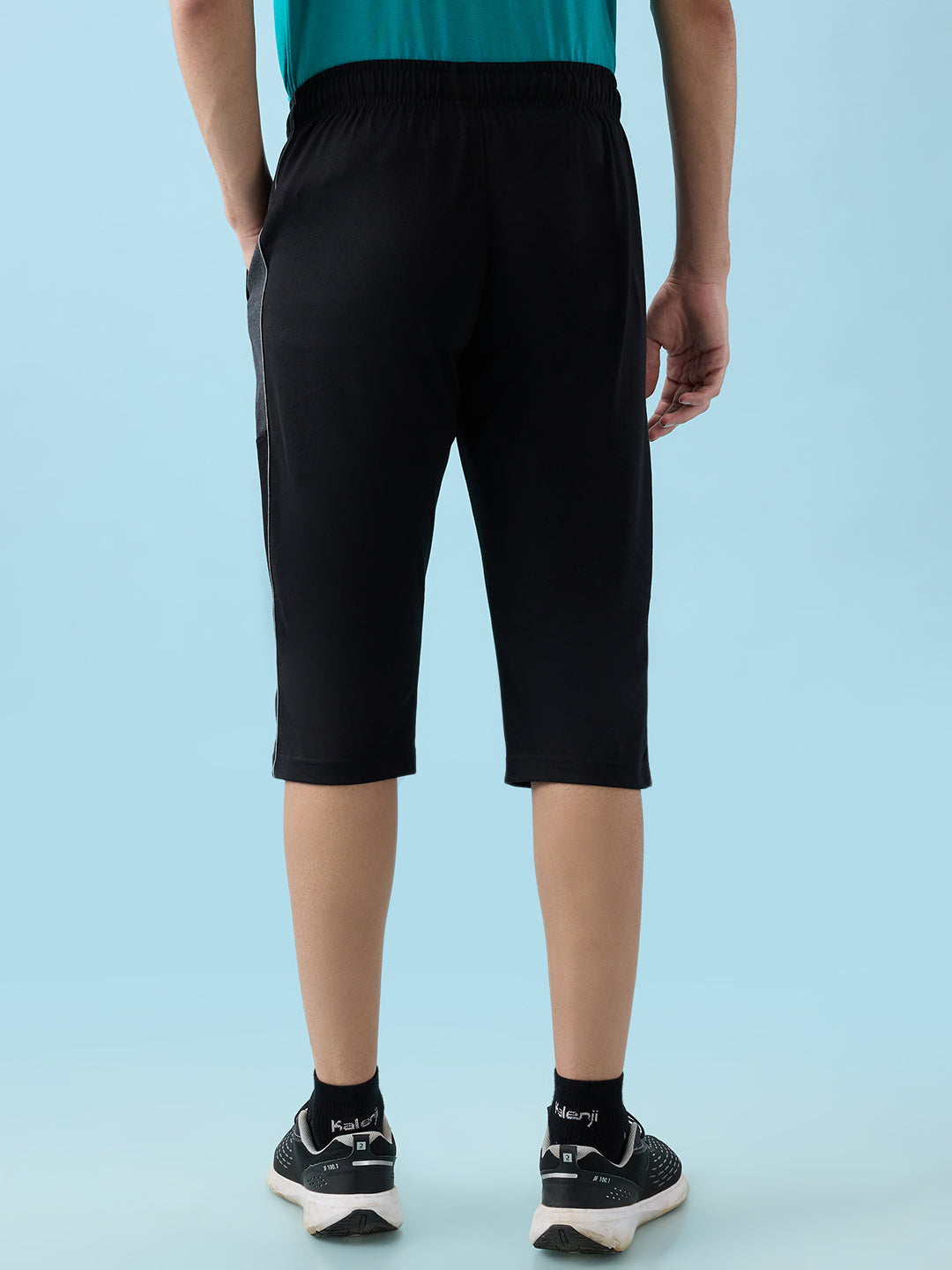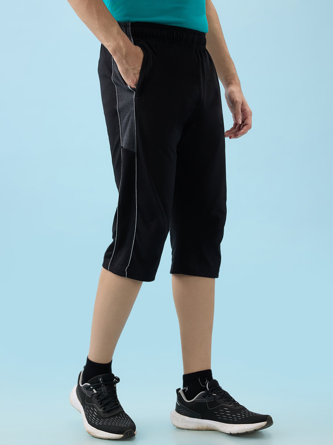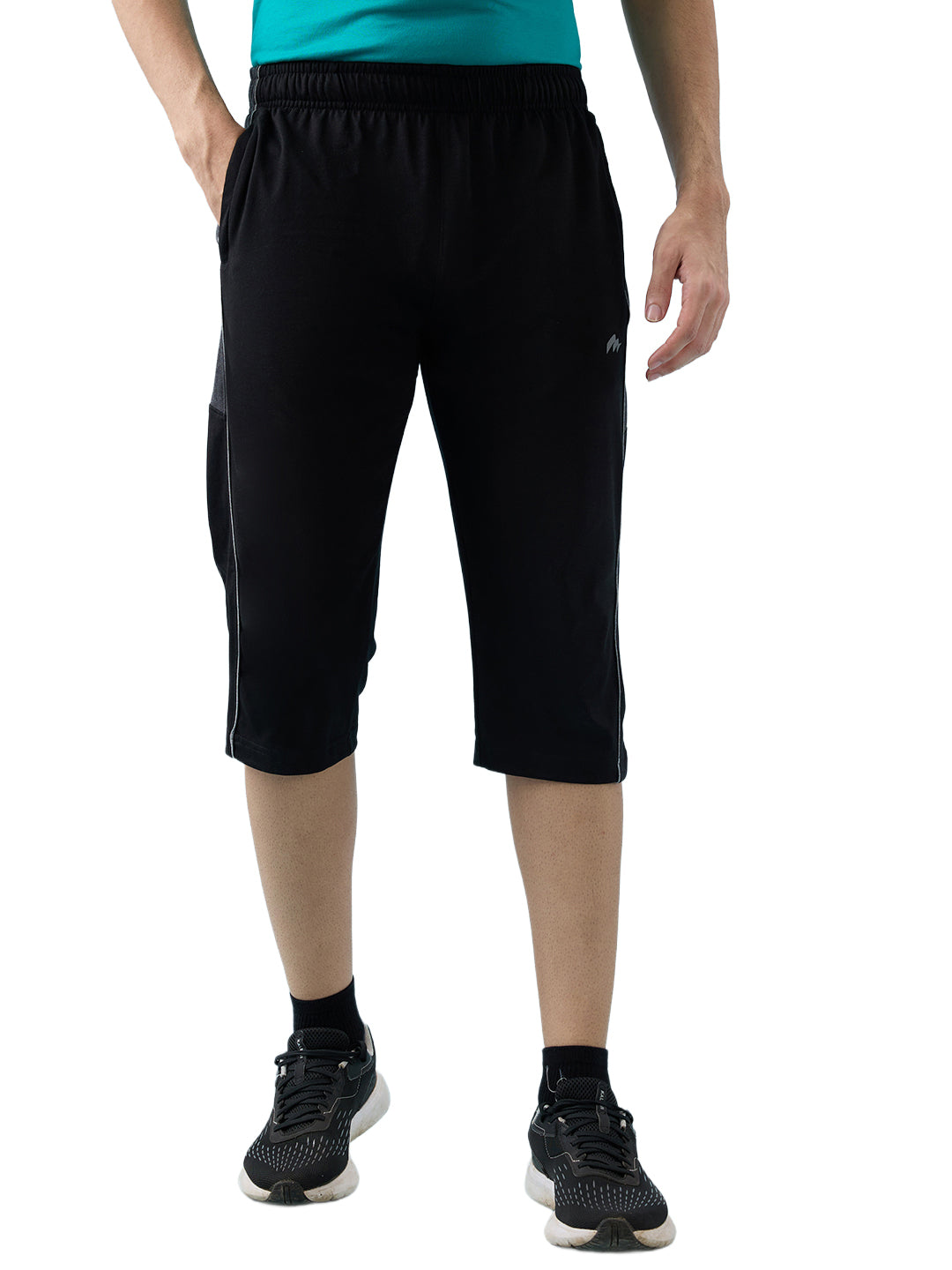 Shop the Men’s Stretch Capri with Side Panel and Zipper Pockets in Black colour.