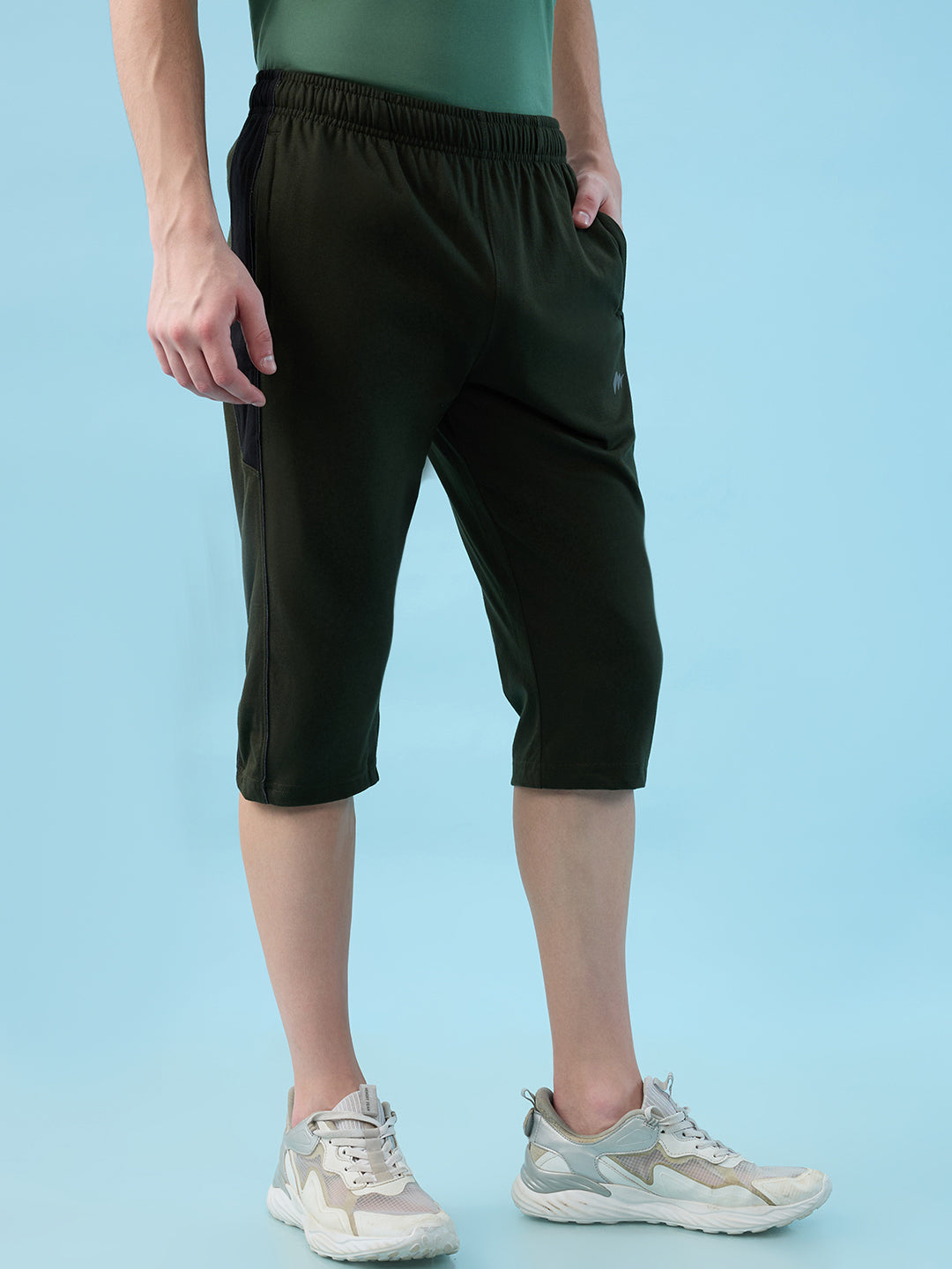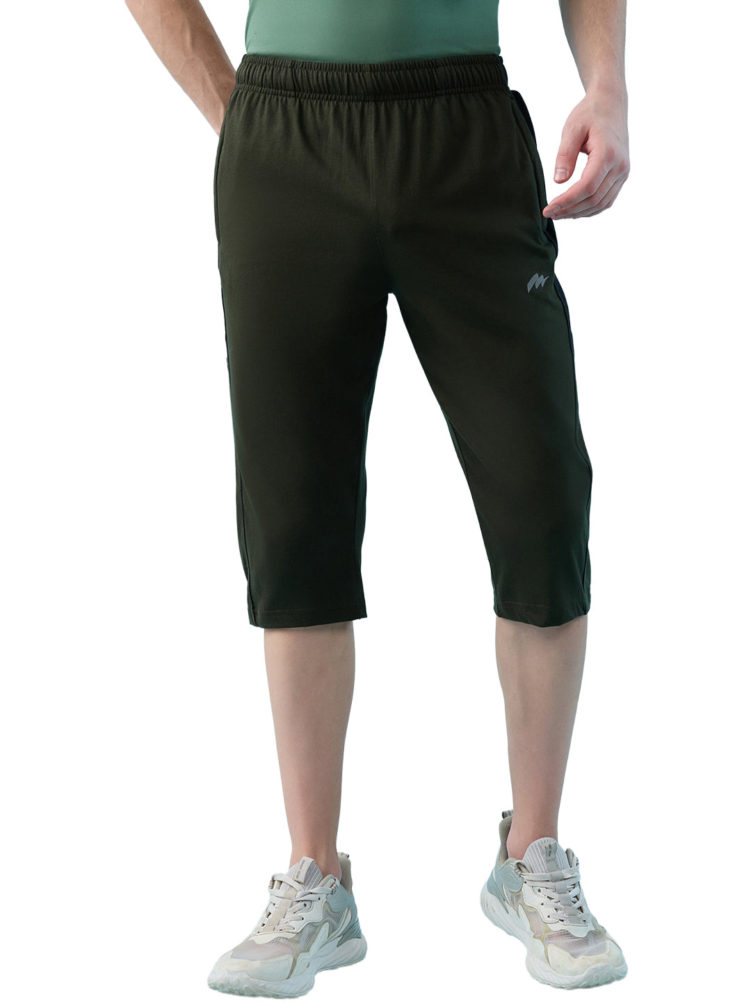 Shop the Men’s Stretch Capri with Side Panel and Zipper Pockets in Olive colour.