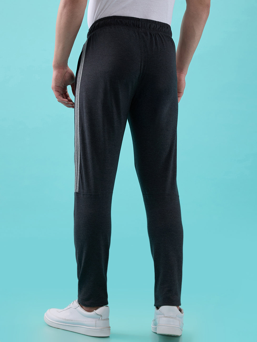 Shop the Men’s Track Pants with Zippered Side Pockets and Elasticated Waistband in Anthra Melange colour.