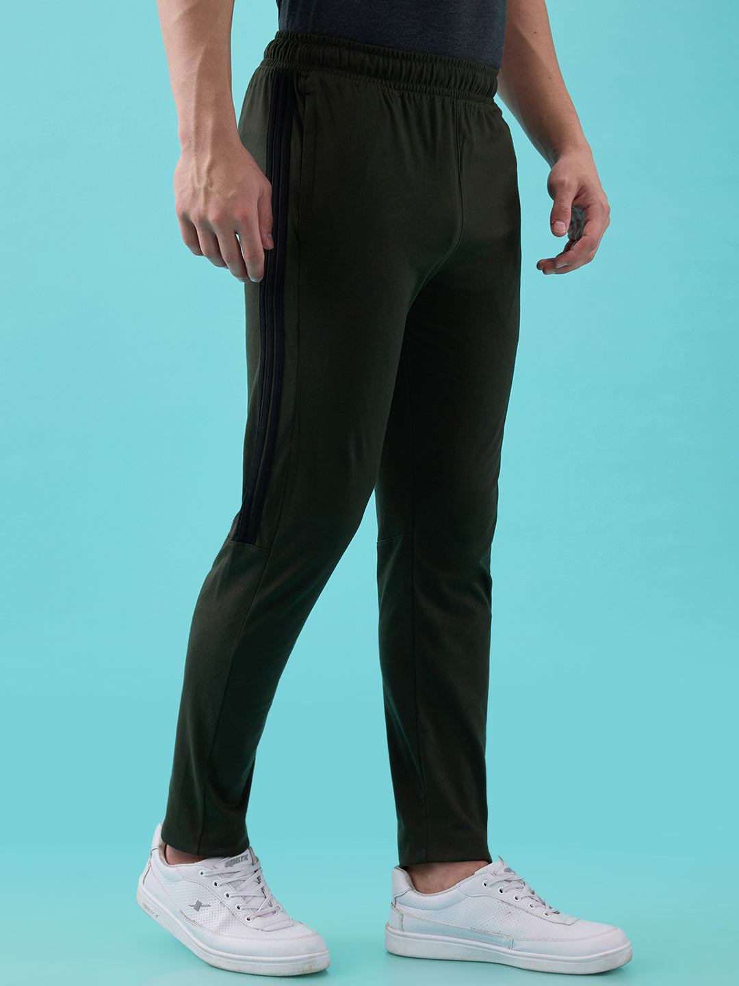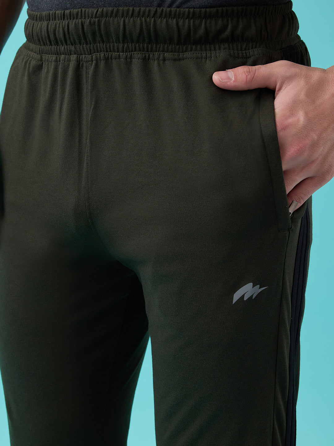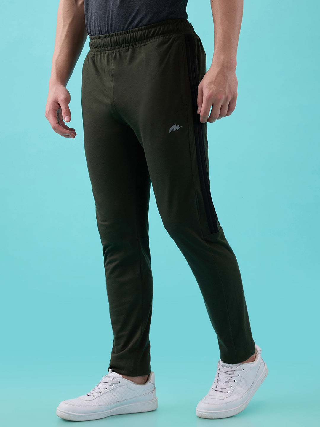 Shop the Men’s Cotton-Blend Track Pants with Zipper Pockets and Ribbed Waistband in Olive colour.