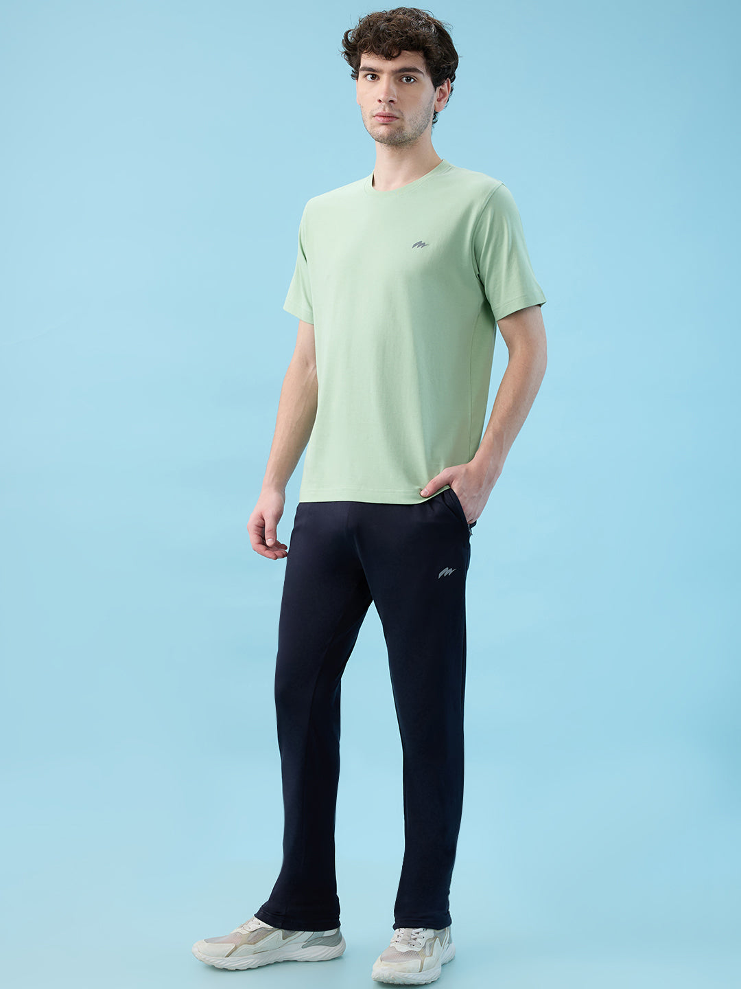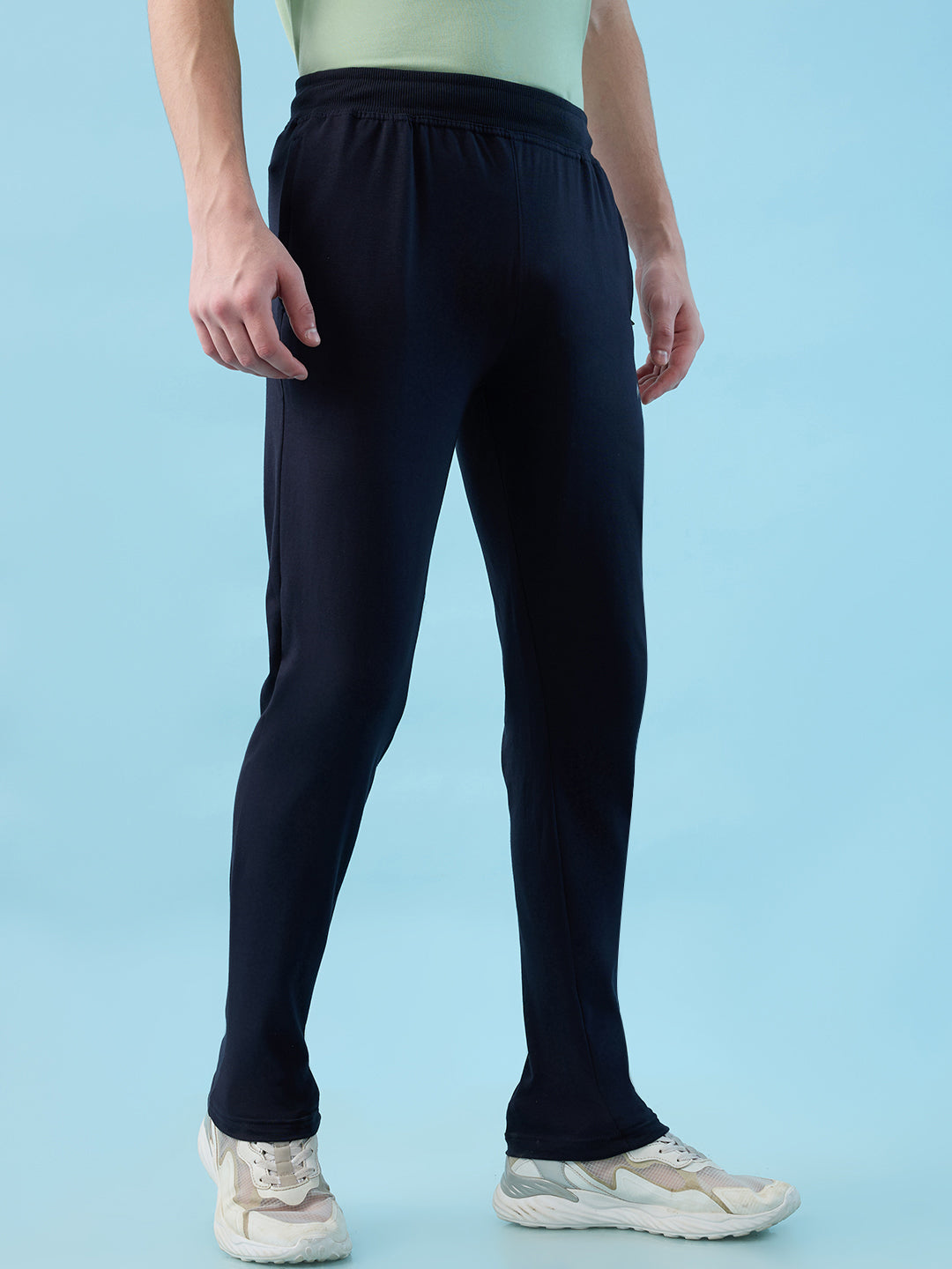Shop the Men’s Track Pants with Zippered Side Pockets and Ribbed Waistband in Navy Blue colour.