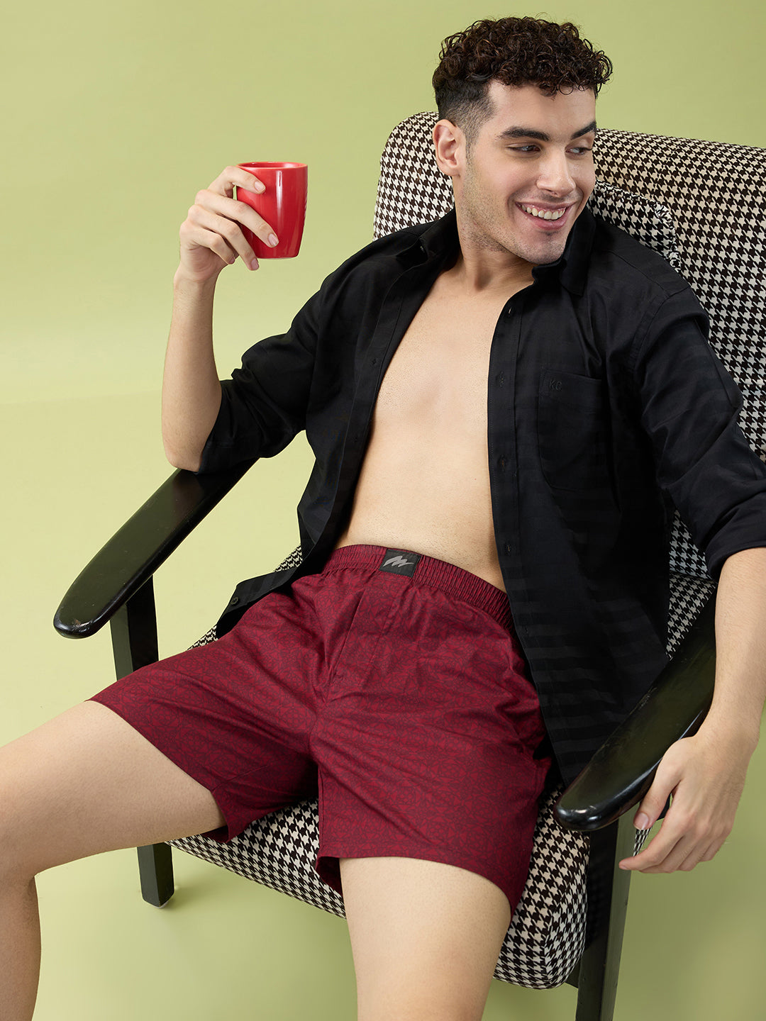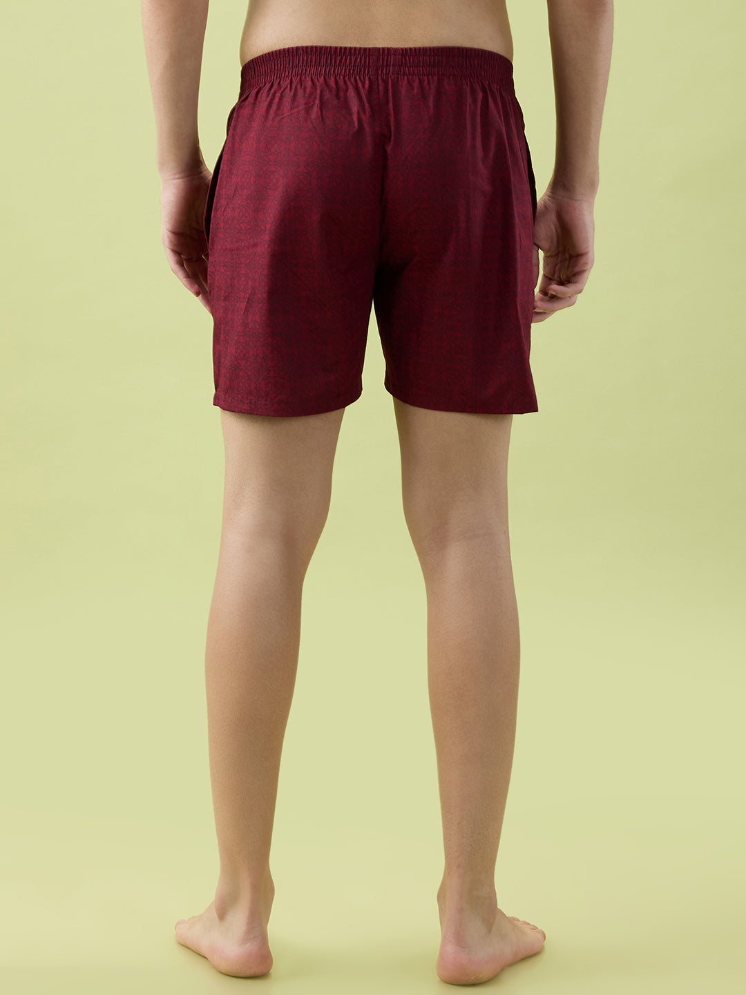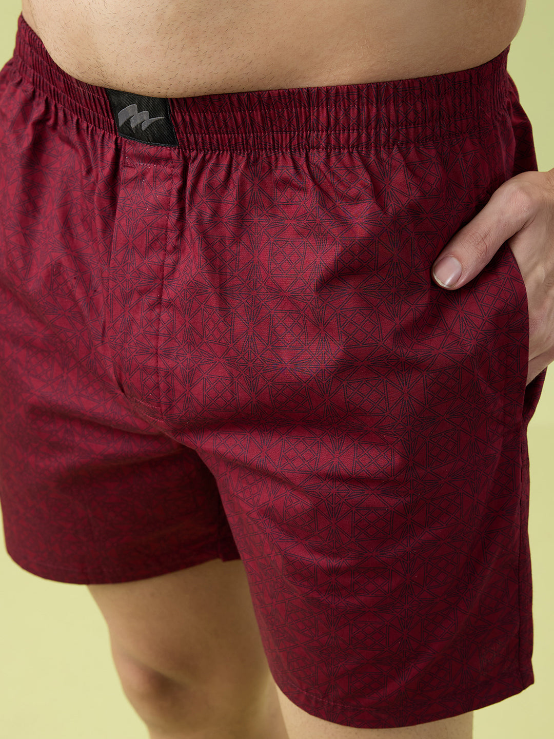 Shop the Men’s Yarn Dyed Checked Woven Boxer with Side Pockets in Maroon colour.