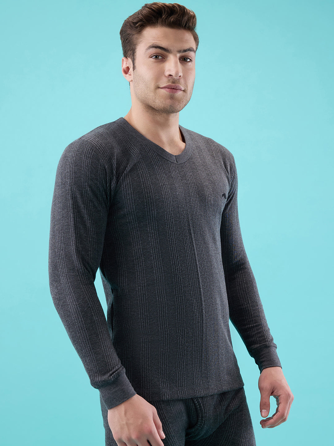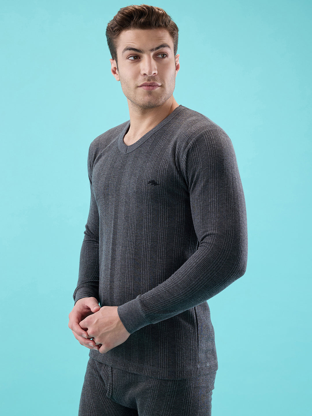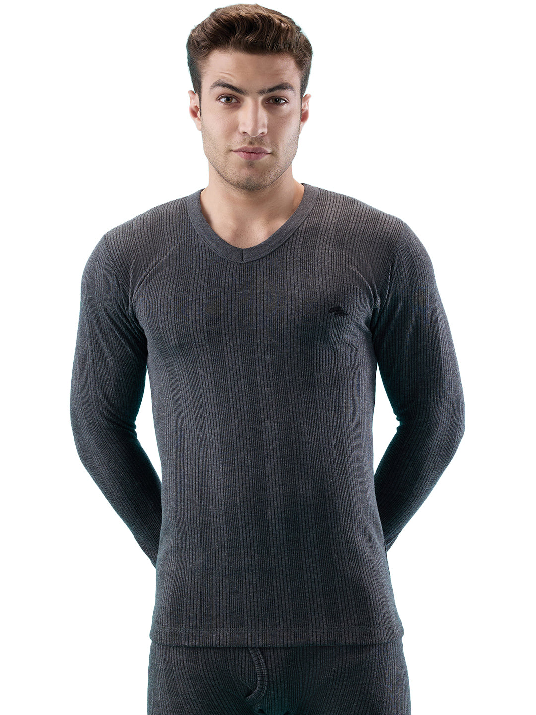 Shop the HINT Men’s V-Neck Flare Full-Sleeve Thermal Vest in Charcoal colour.