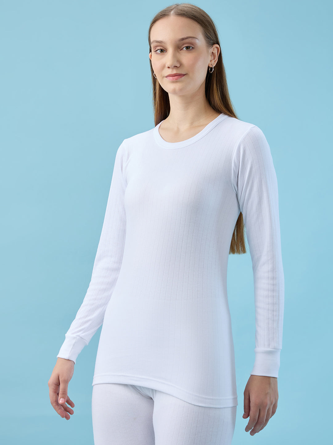 The HINT Women’s Thermal Parka R-Neck Full-Sleeve Vest offers a warm, breathable, and stylish solution for winter layering. Made from a premium blend of 60% cotton and 40% polyester drop-needle interlock fabric, this thermal inner provides soft insulation while maintaining excellent airflow for all-day comfort. The round neckline and elastane ribbing at the neck and cuffs create a snug, secure fit that works beautifully under sweaters, jackets, or everyday tops. Available in White colour, it pairs effortlessly with a wide range of winter outfits. You can buy this women’s thermal wear at an affordable price, ensuring great cost value alongside long-lasting durability. Offered in sizes XS to 4XL, it delivers a flattering fit for every body type.
