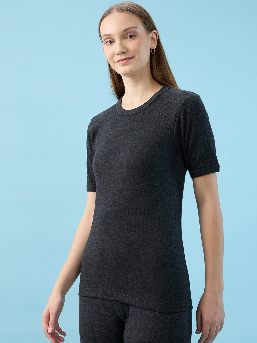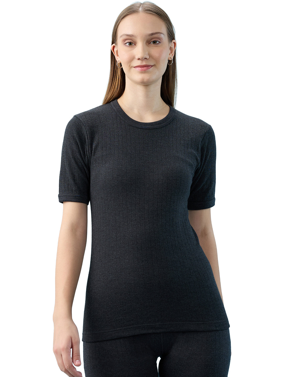 The HINT Women’s Thermal Parka R-Neck Half-Sleeve Vest offers a perfect blend of warmth, breathability, and timeless winter style. Made from a premium 60% cotton and 40% polyester drop-needle interlock fabric, this thermal inner provides a smooth, soft feel while keeping you comfortably insulated through colder days. The R-neckline and elastane ribbing at the neck and sleeves ensure a flexible, secure fit that layers effortlessly under everyday outfits. Available in classic charcoal colour, it pairs beautifully with a wide range of winter essentials. You can buy this women’s thermal vest at an affordable price, offering great cost value and dependable comfort for daily winter wear. With sizes ranging from XS to 4XL, it delivers a flattering, relaxed fit for all body types.